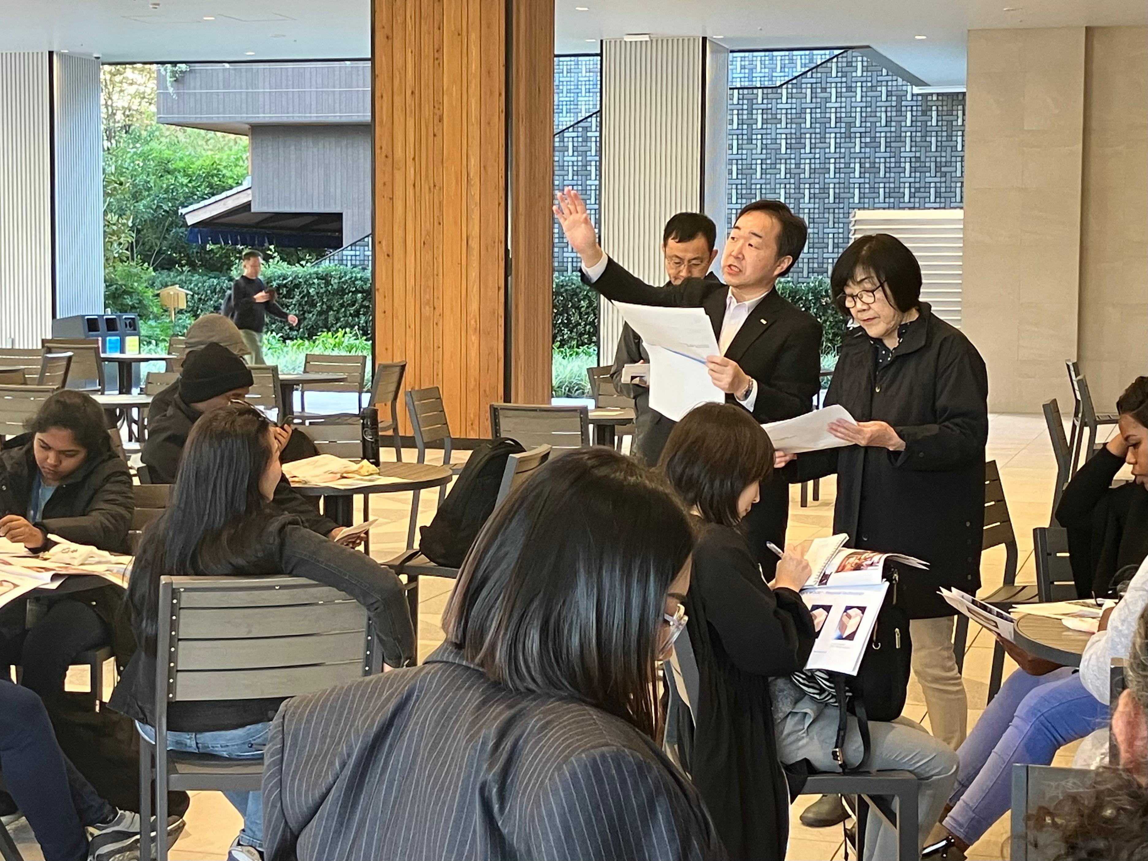 ブラジルやパキスタン、カメルーンなど12か国の研修員へ、先進的木造都市の実例として、木質耐火部材COOL WOODやハイブリッド構造による適材適所での木材利用などについて当社から紹介しました。