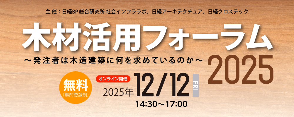 12/12 日経BP「木材活用フォーラム2025 ~発注者は木造建築に何を求めているのか~」に登壇します