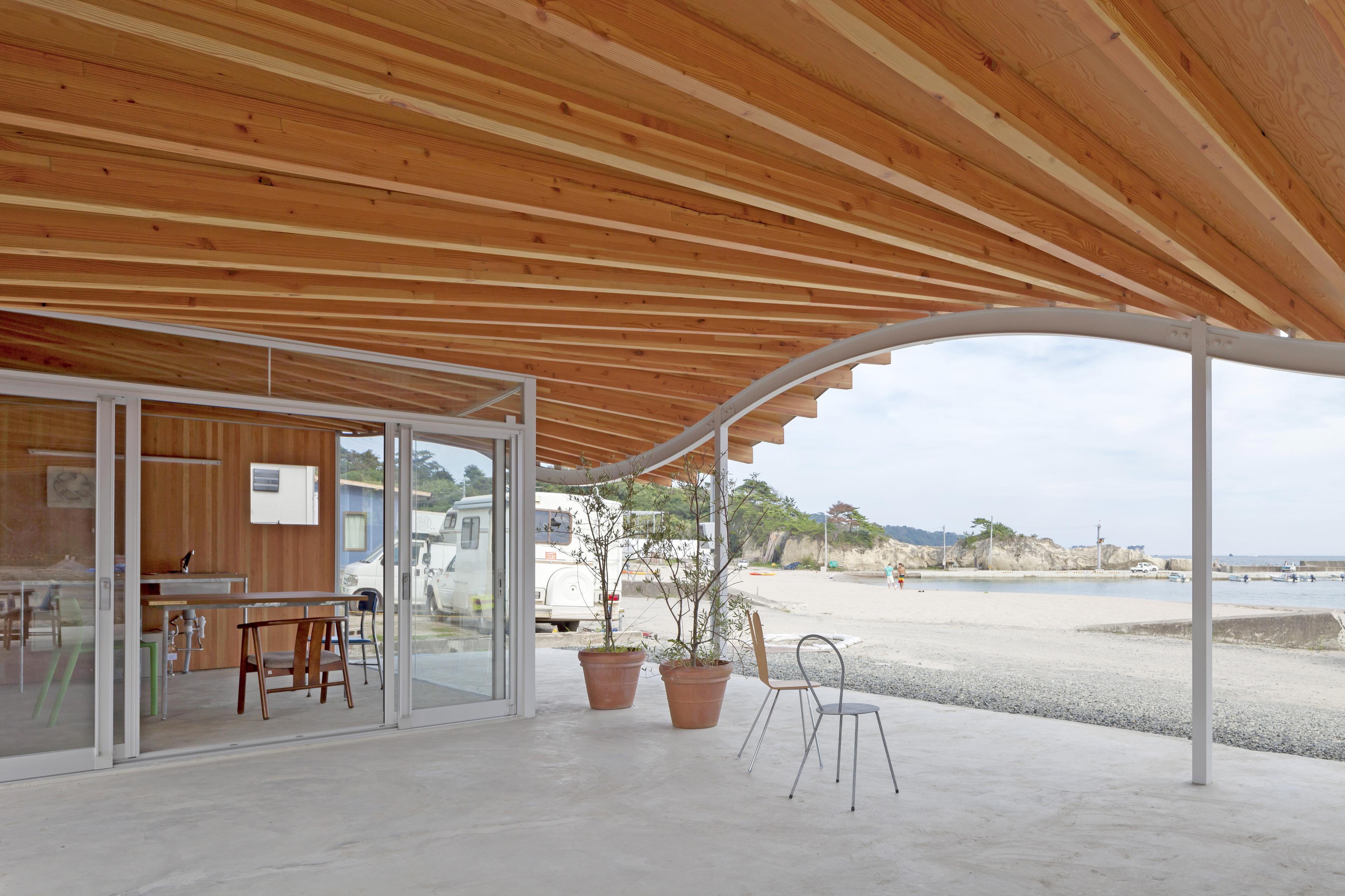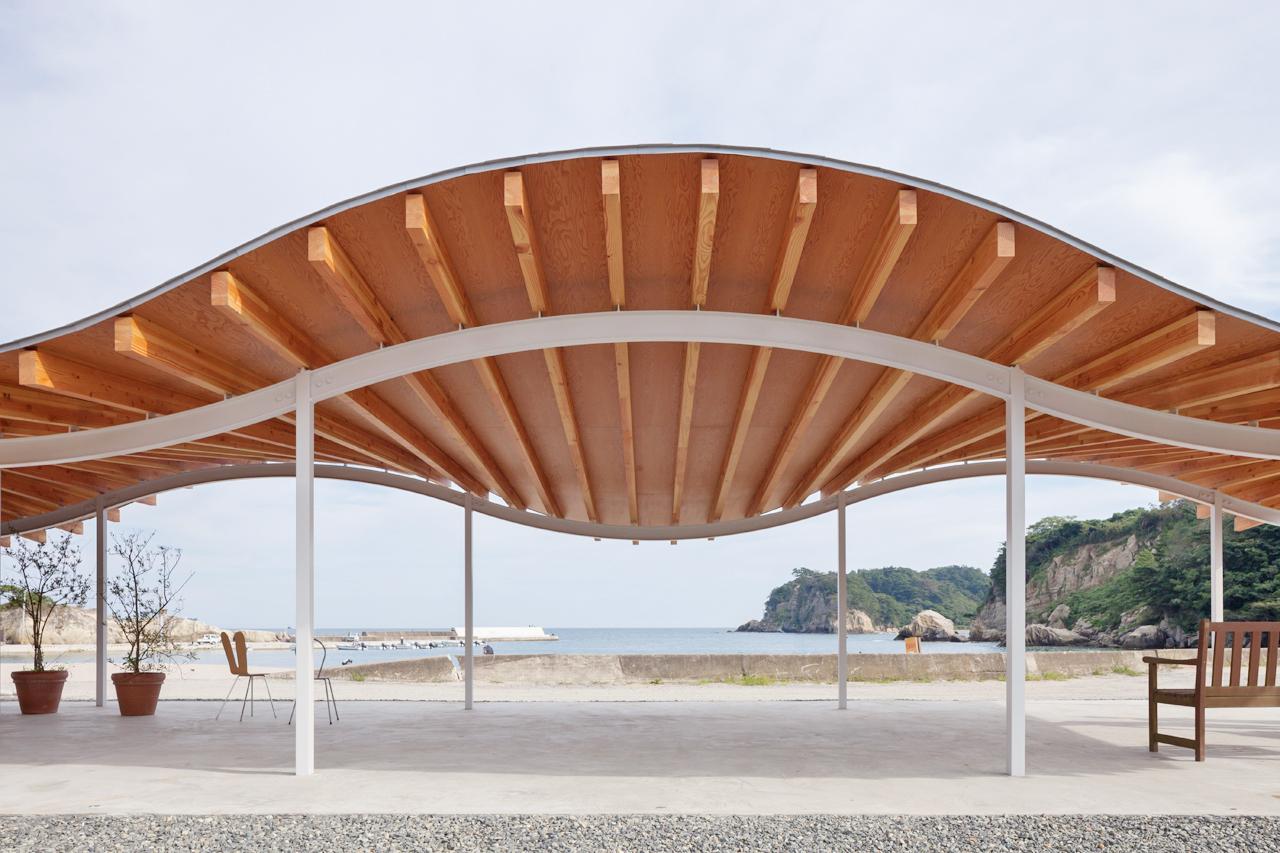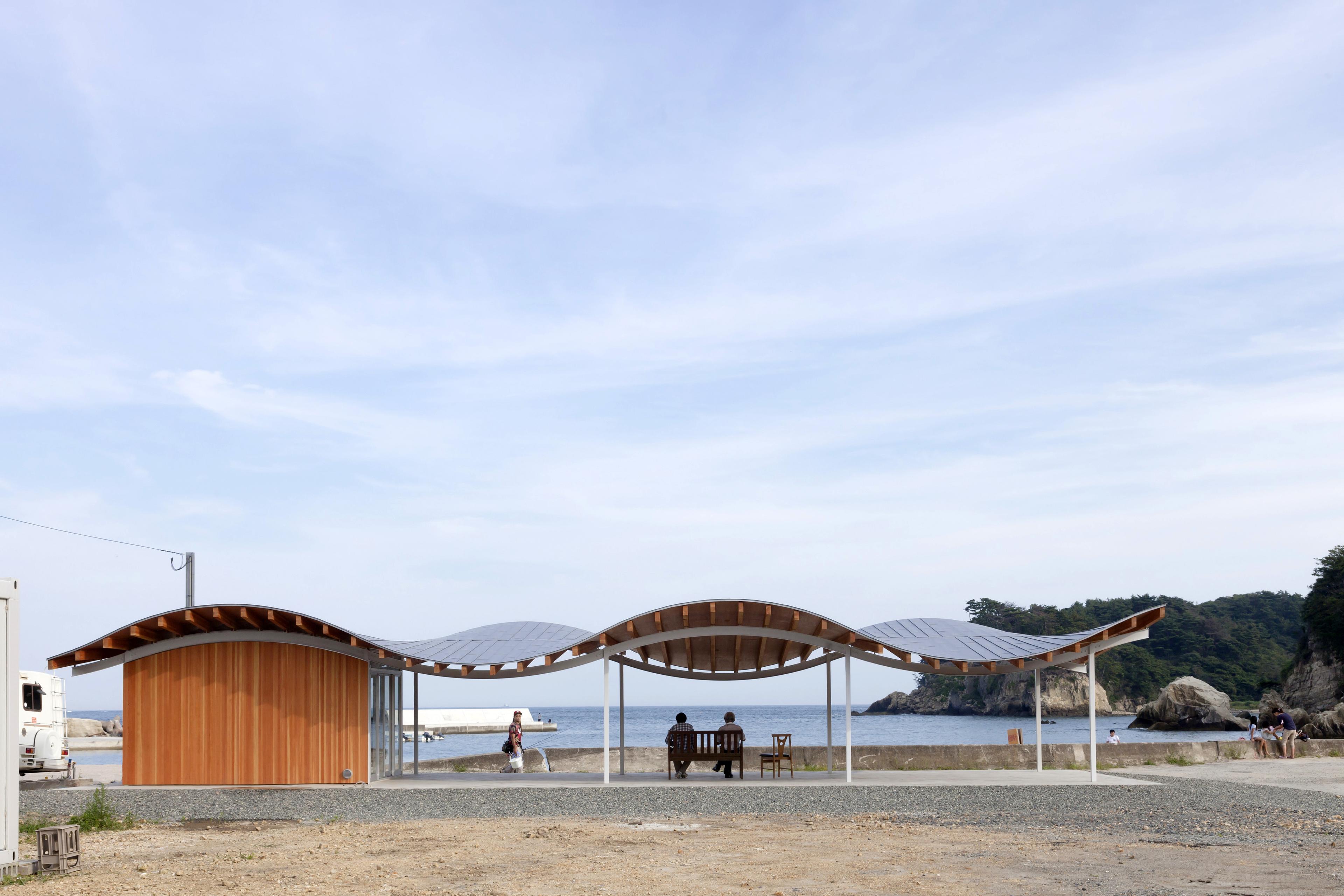 美しく広がる砂浜に、復興の起点となる「みんなの家」を月浜の方々とつくることになった。動きのある軽やかな屋根を持つ作業場は、鉛直ブレースや耐震壁をなくした開放的なラーメン構造とし、休憩所は、海に向かって開く作業場とひと続きの空間とした。朝日が昇る頃、漁師が採れた物を並べて賑わい、昼には人々が砂浜を眺めてゆったりしている。夕暮れ時には仕事を終えた漁師の酒盛りが始まり、波の音に溶け込んで夜が更けていく。かつてこの場所にあったいきいきとした浜の風景が、この「みんなの家」をきっかけに再び広がっていくことを期待している。