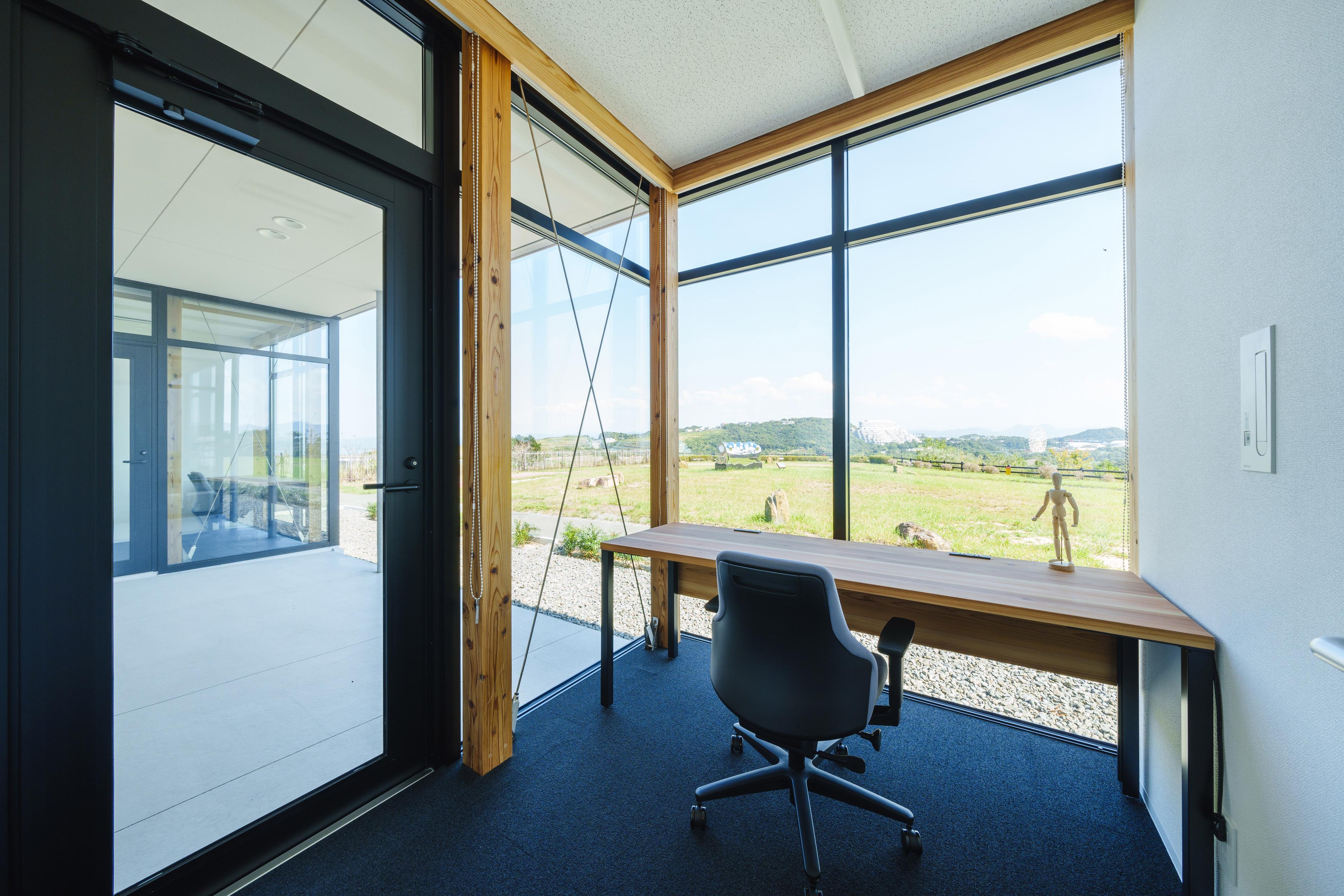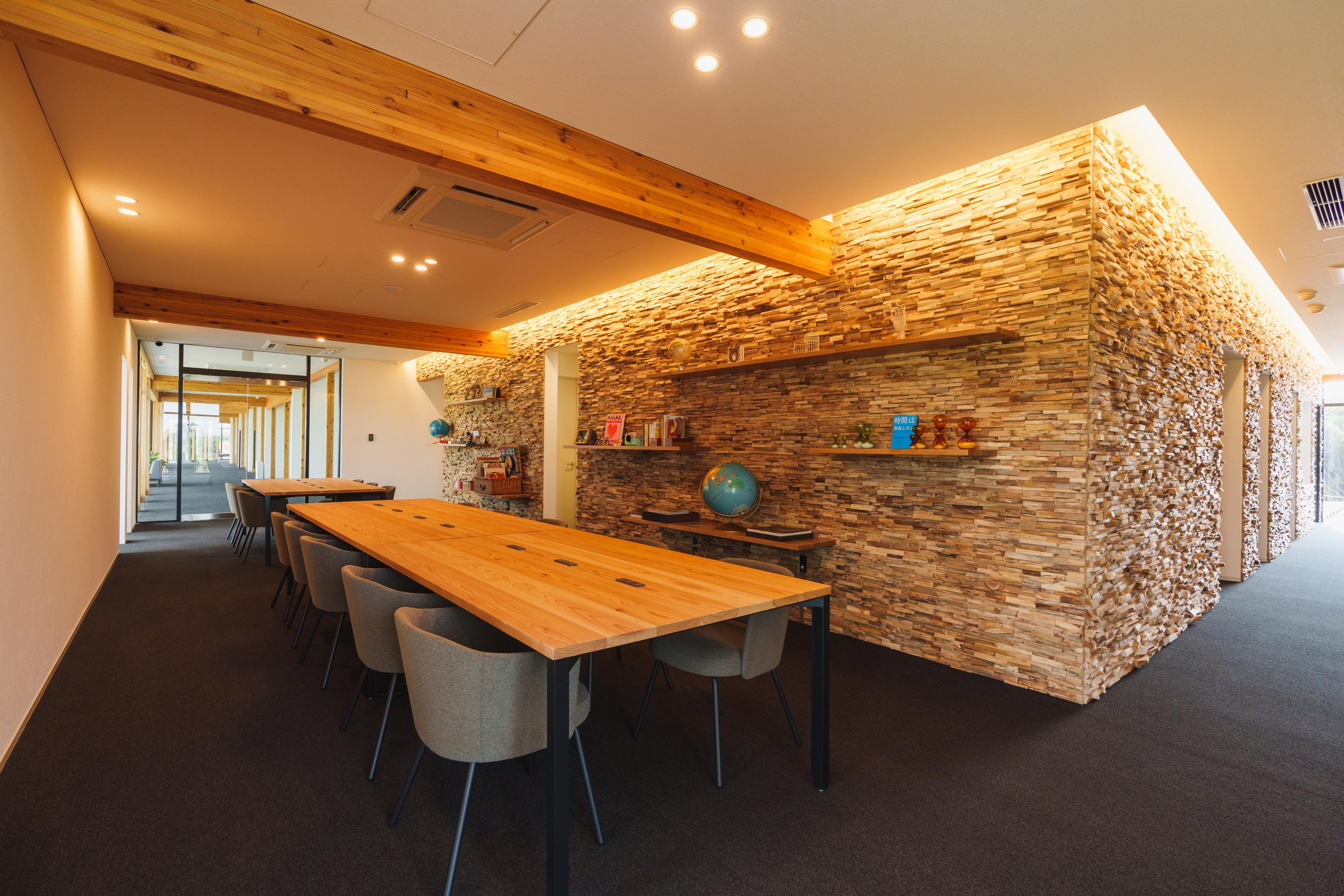 南紀白浜空港に隣接したワーケーション施設。7つのオフィススペースのある「オフィス専用エリア」と、個室ブースとシェアスペースを備えた「一般利用エリア」があり、ビジネスの拠点や地域交流の場として利用が可能。市街地や白良浜へは車で5分でアクセスでき、仕事の後にビーチを楽しむこともできる。