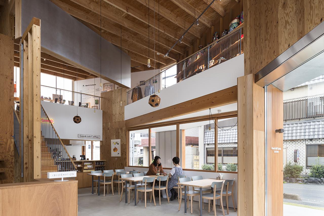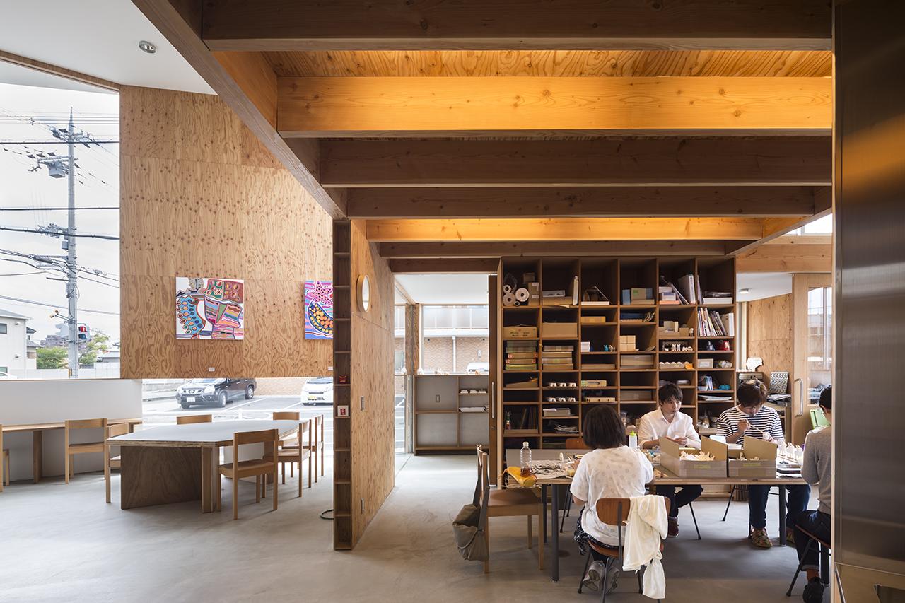 Good Job! Center KASHIBAは、奈良県香芝市にある、障がいのある人とともにこれからの働き方について考えるための場所である。障がいを持つ人も持たない人も、地元の方も遠方からの来訪者も、それぞれに居場所があり個性をいかしながら共に働くことの出来る場所として構想された。そこで私たちはたくさんの小さな居場所が、わっと集まって出来たような建築がつくれないかと考えた。天井が高く明るい場所や、壁の後ろに隠れた落ち着いた机、緑が印象的な窓辺等、訪れる人がそれぞれ自分にとって心地よい居場所を見つけられるようになっている。