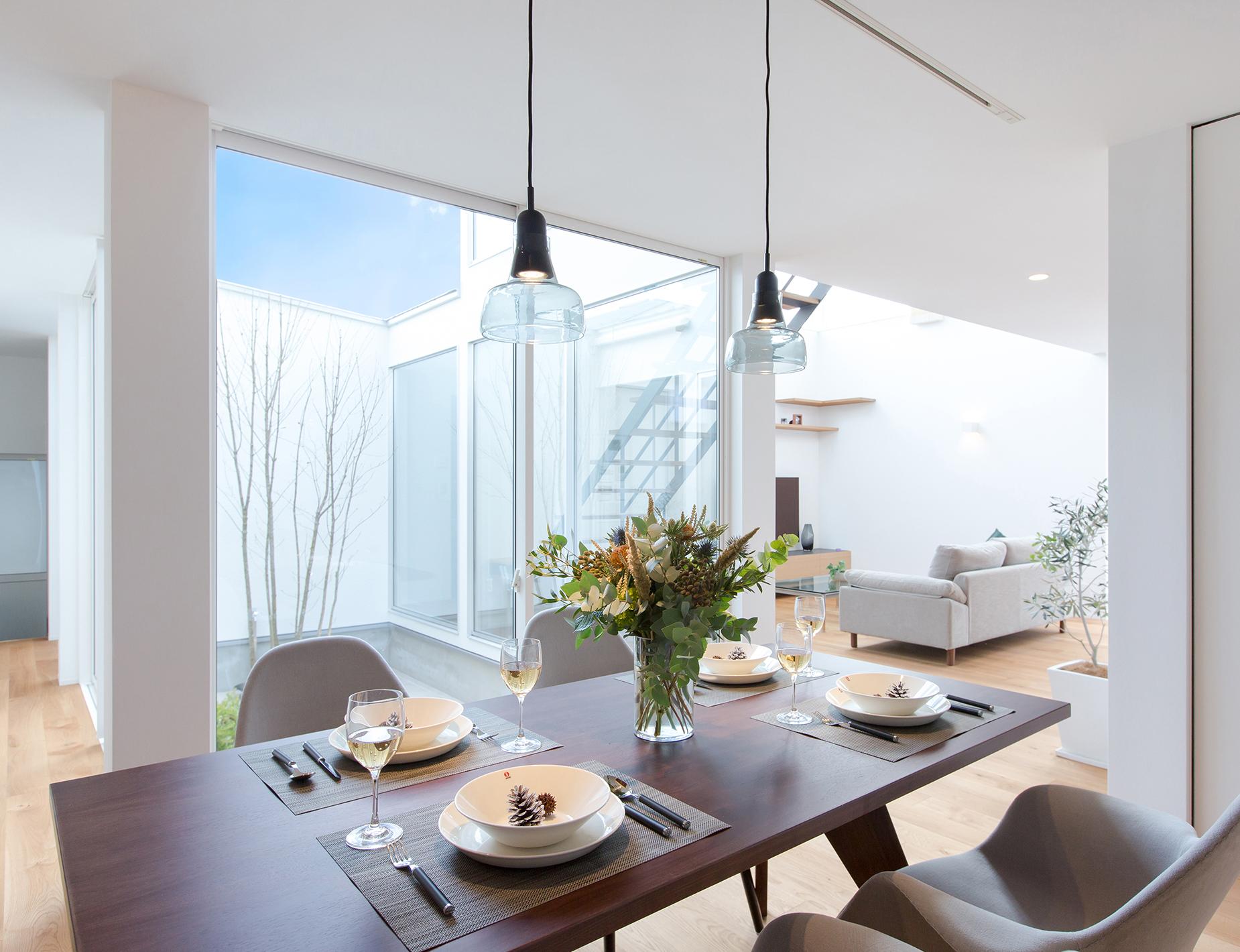 建物の中心に配置した中庭が、プライバシーを保ちつつ、外とつながる開放的な暮らしを実現している