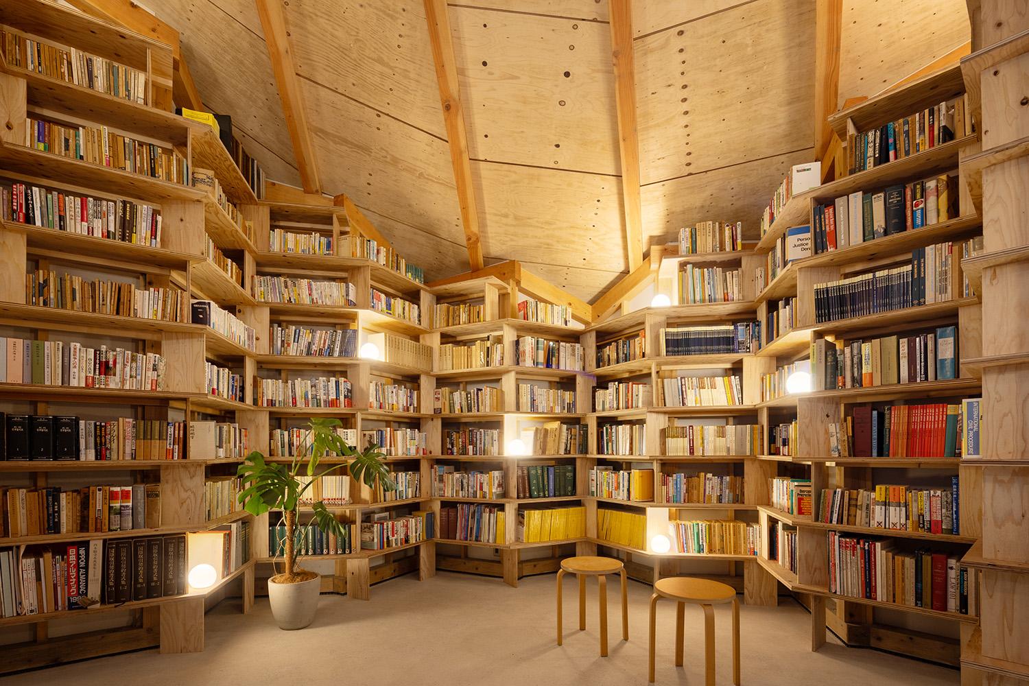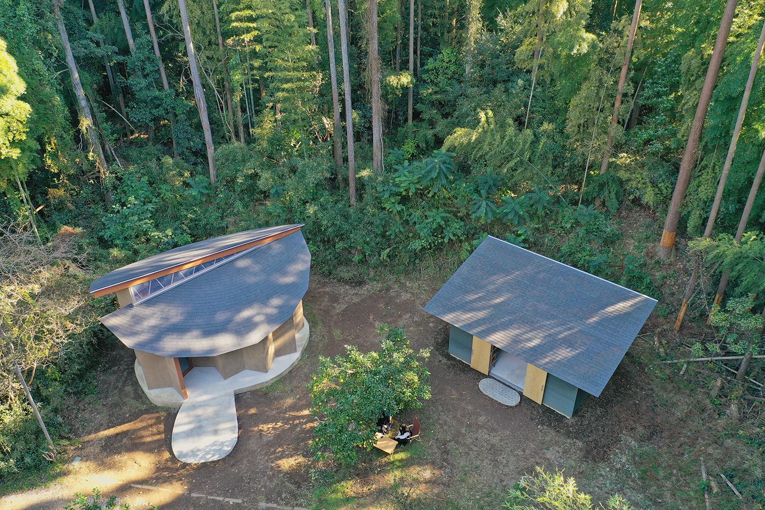 千葉県いすみ市の小さな山の頂上に、1万冊の本を収容する書庫と離れをつくった。