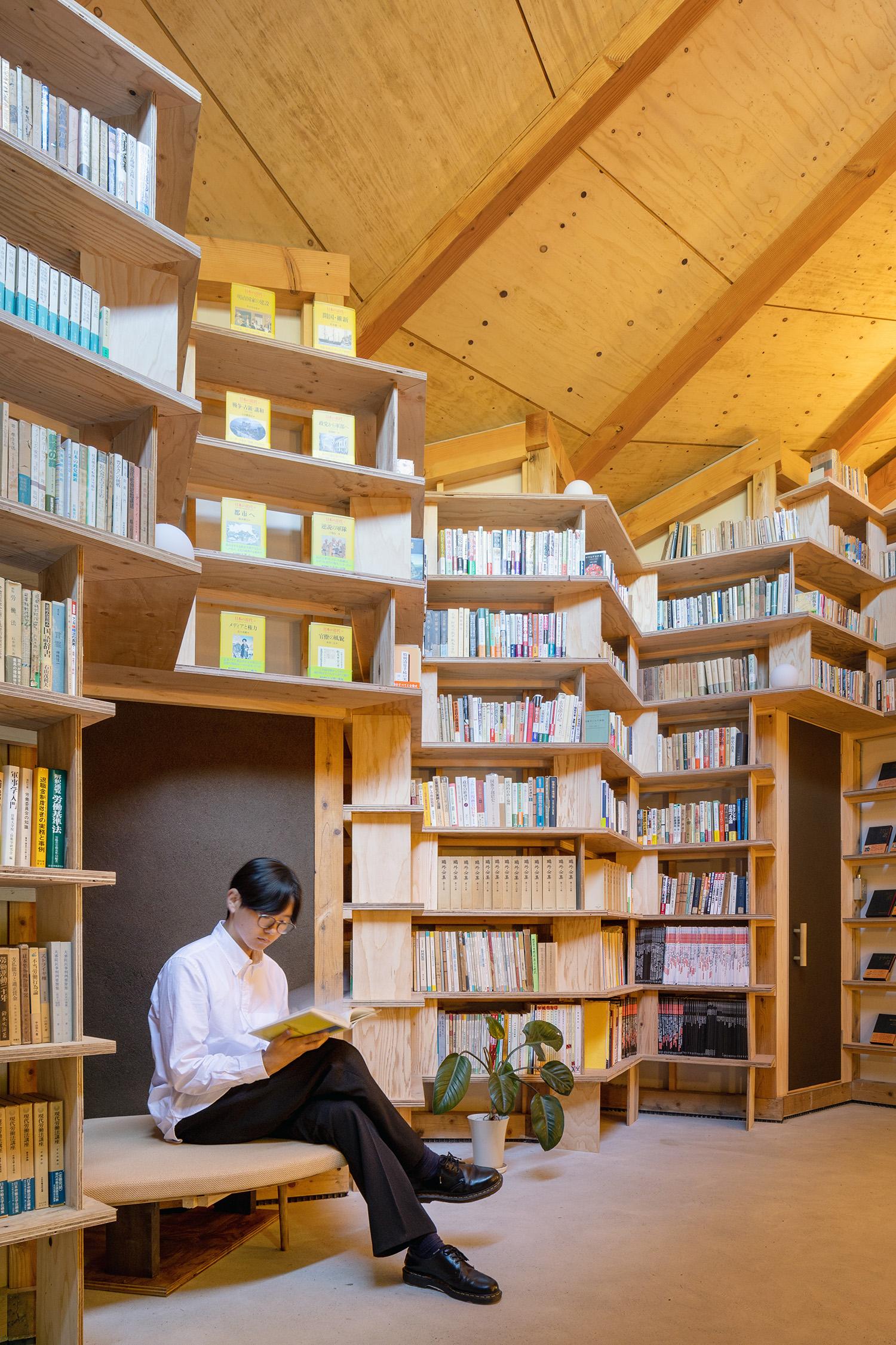 書庫は、この地に訪れたくなる動機付けのひとつとして、みんなが見に行きたくなるような特徴的なかたちの建物を提案した。コンパクトなスペースの中にできる限りたくさんの本が置けるよう、ジグザグの壁を巻貝のように囲い込み外壁の周長をかせぎ、内部に小さな閲覧スペースを設けた。