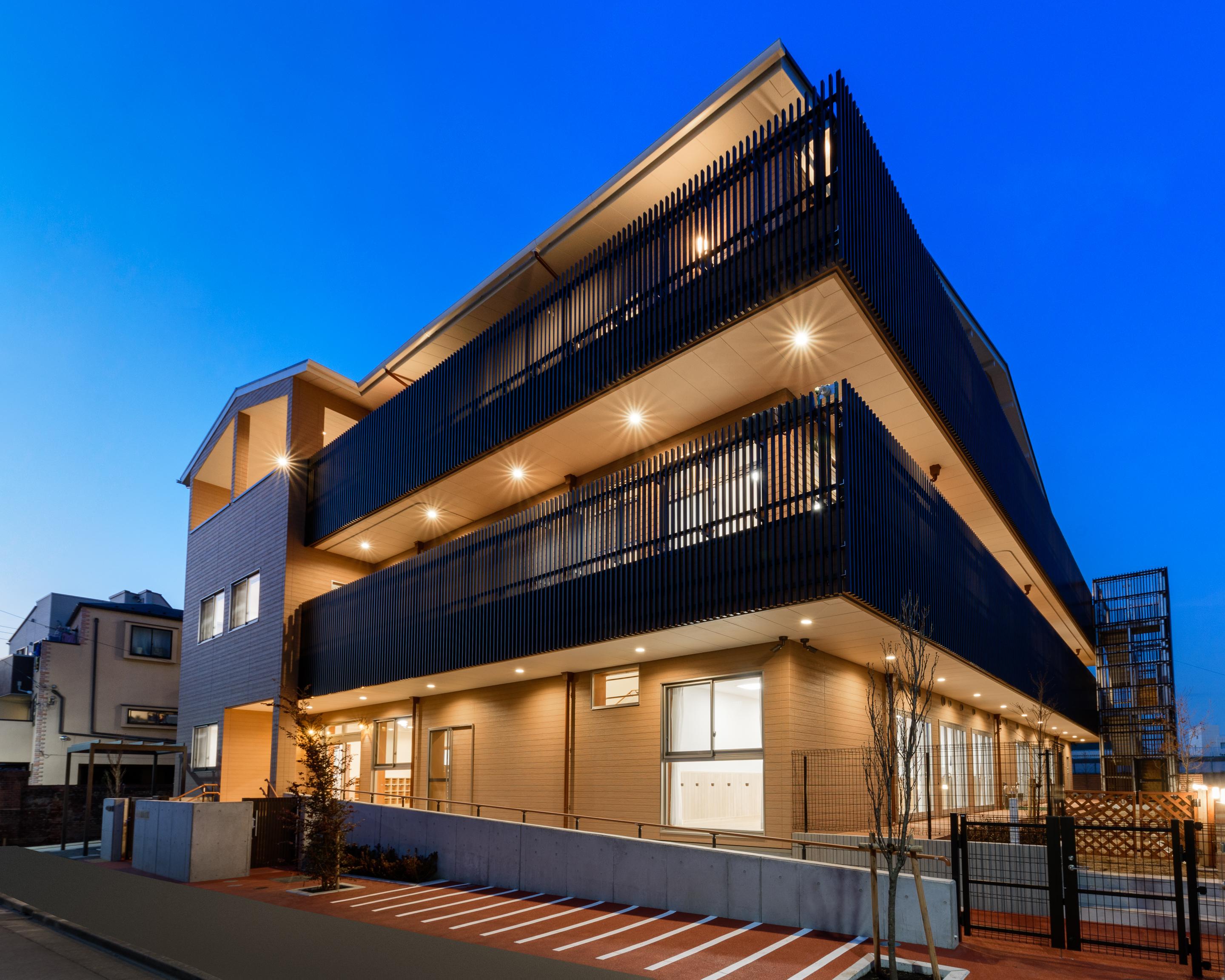 南東側外観(夜景)