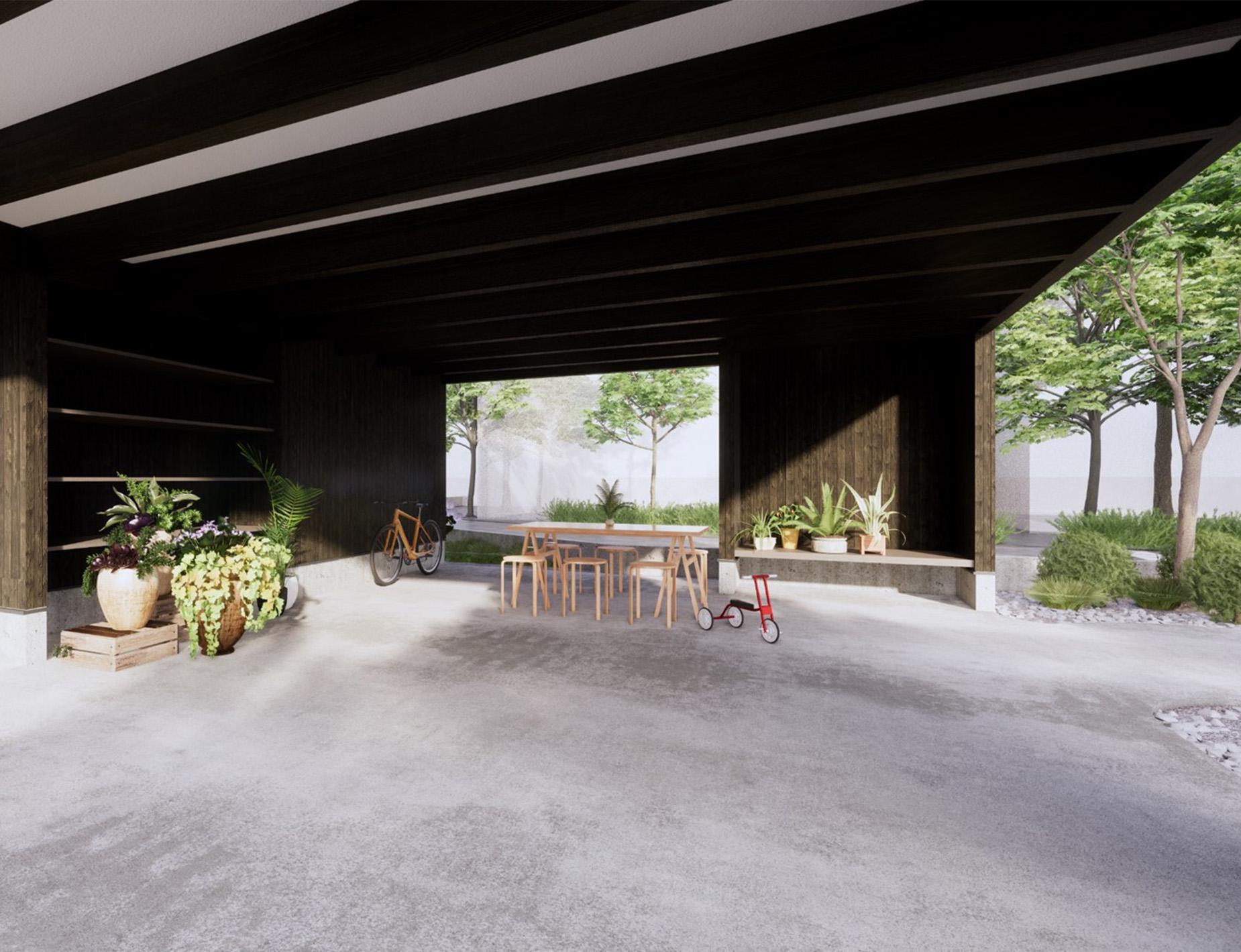 薪割りや子供の遊び場、そしてホビースペースなど豊かで多様な空間が生まれる