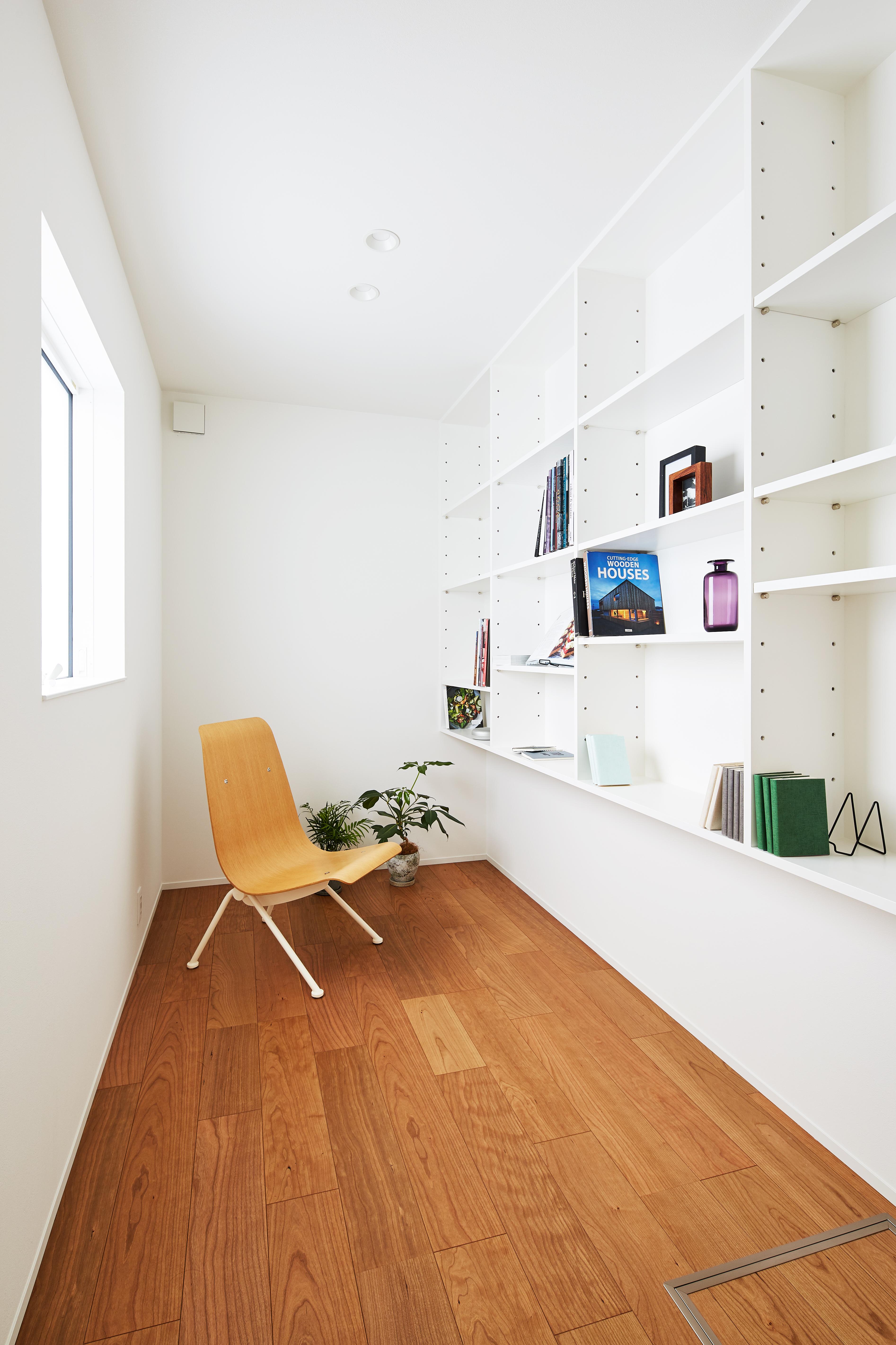 予備室には本やインテリアをディスプレイできる壁面収納を設置。