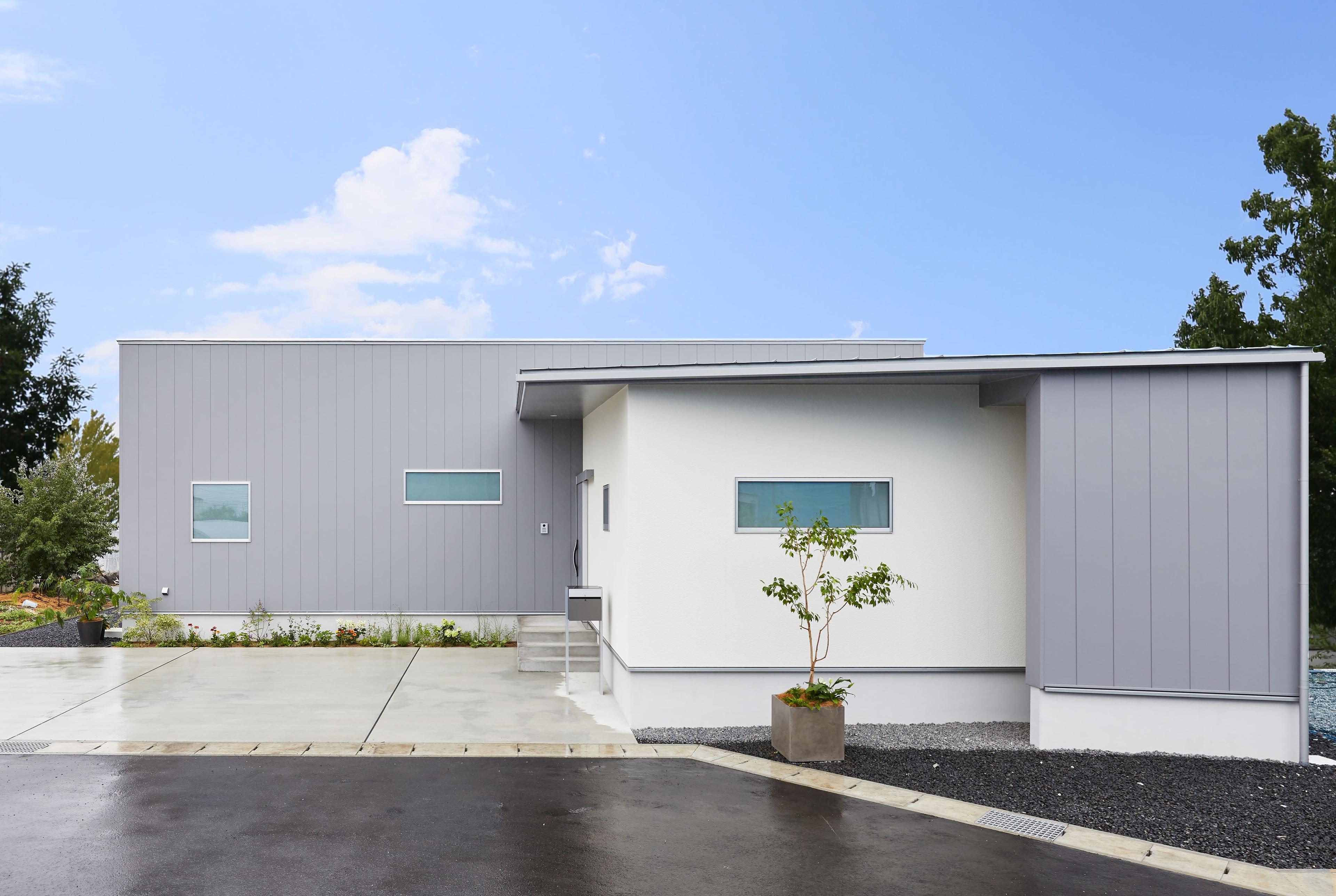 屋根で変化をつけたスタイリッシュでモダンな外観。