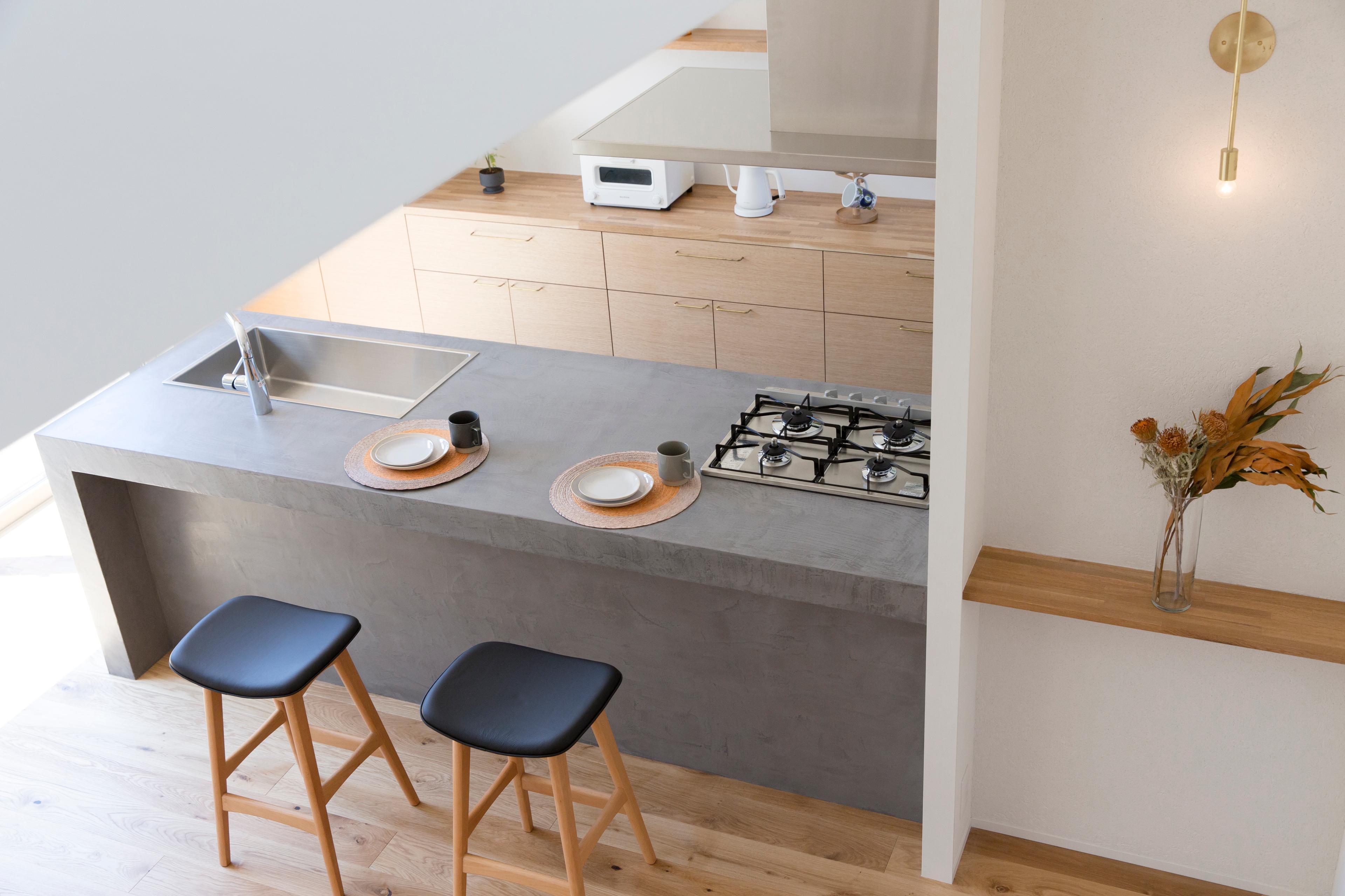 モルタル調の製作キッチン