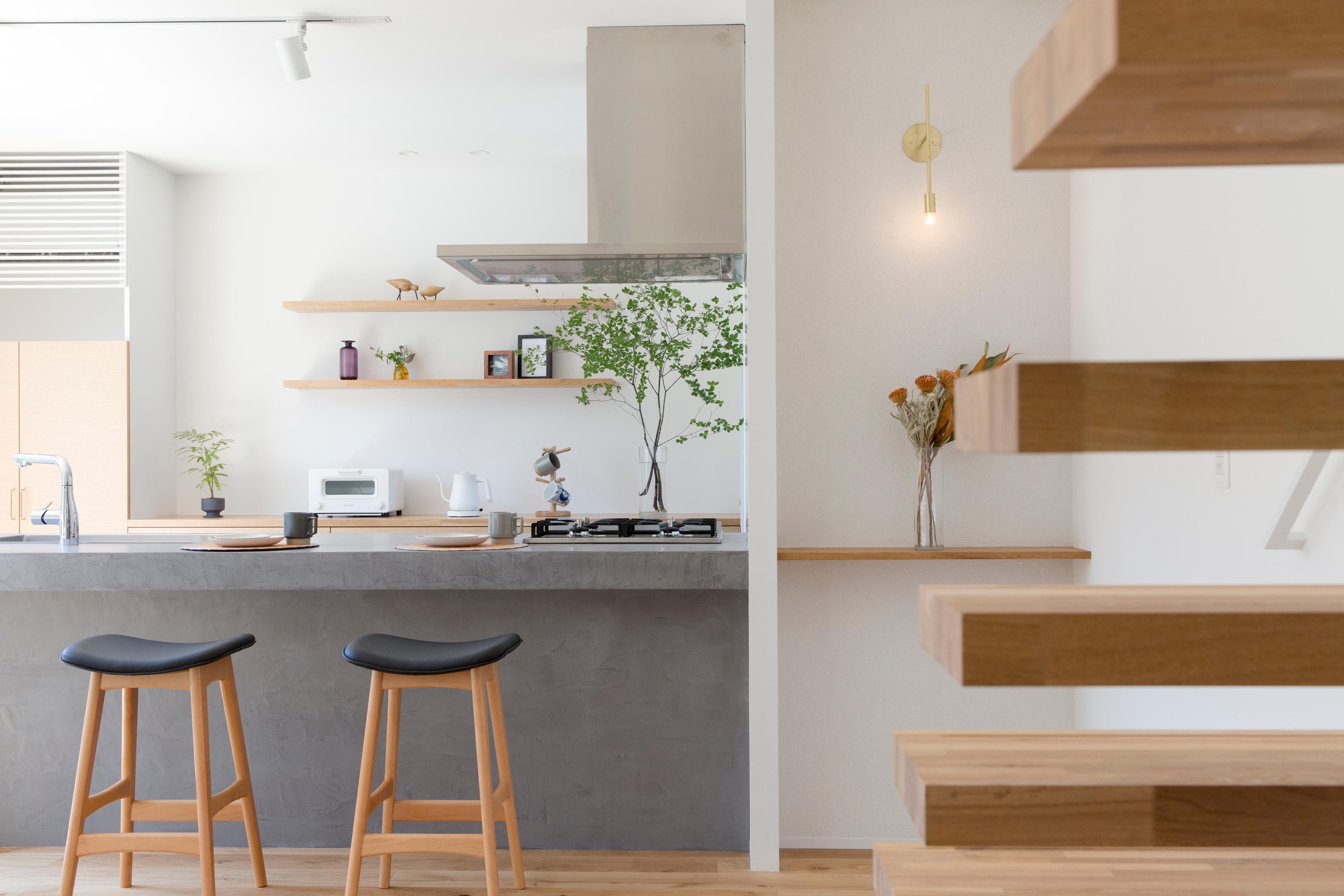 モルタル調の左官仕上げのキッチン