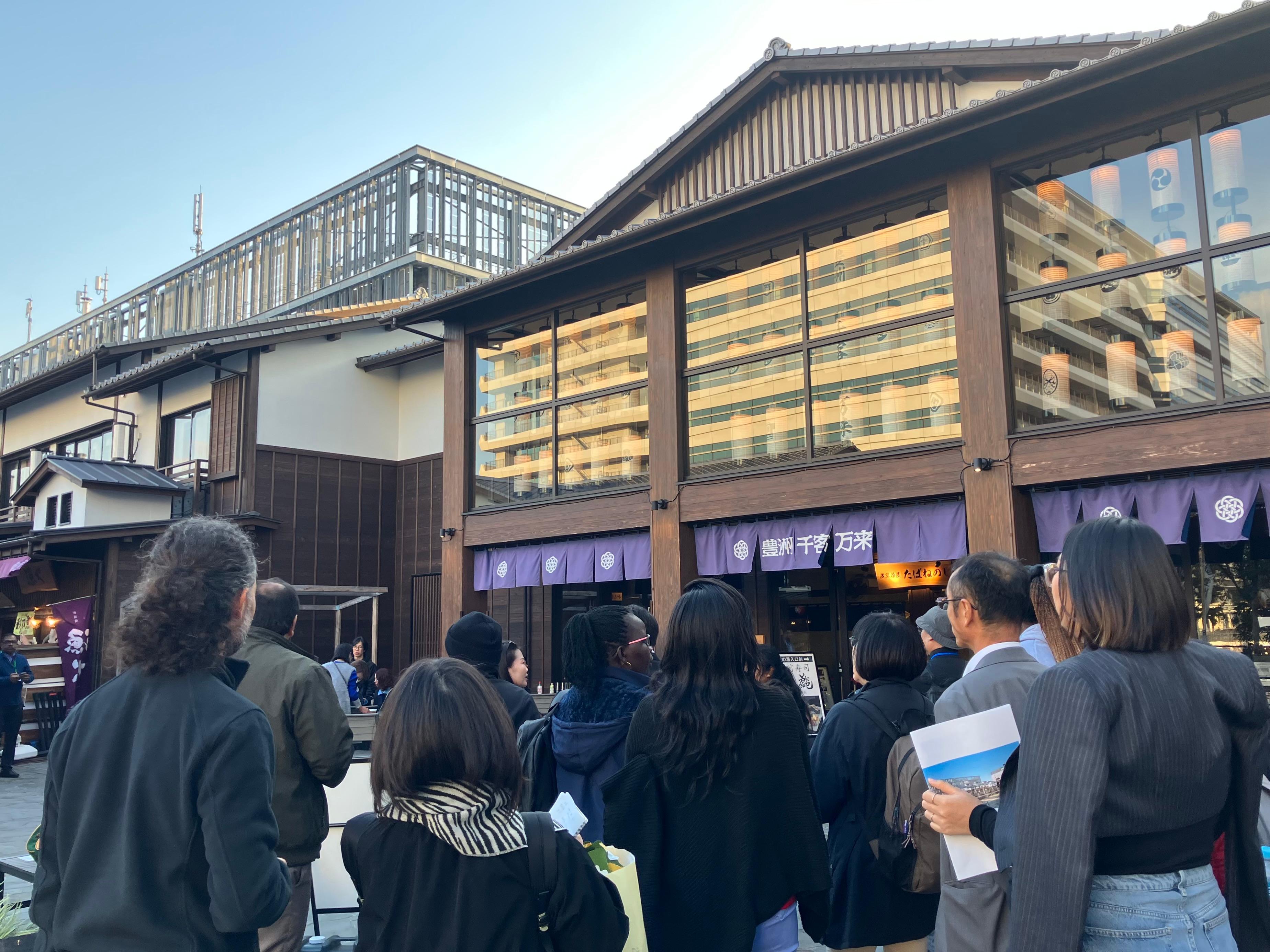 【イベント】持続可能な森林経営のため 12か国の海外研修員に木造都市の実例として豊洲千客万来を紹介しました