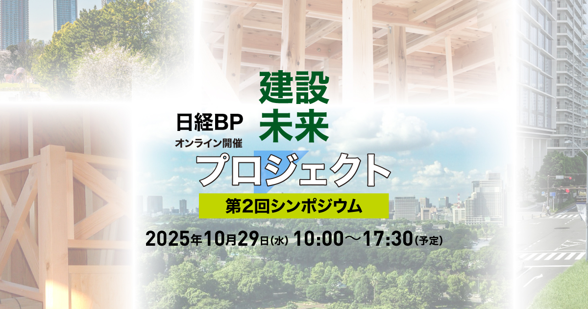 日経BP 建設未来プロジェクト 第2回シンポジウムに弊社 常務取締役の安達が登壇し、「木造・木質化によるネットゼロ建築をめざして ~持続可能な未来を実現する再生可能・循環型建築~」をテーマに講演を行います。