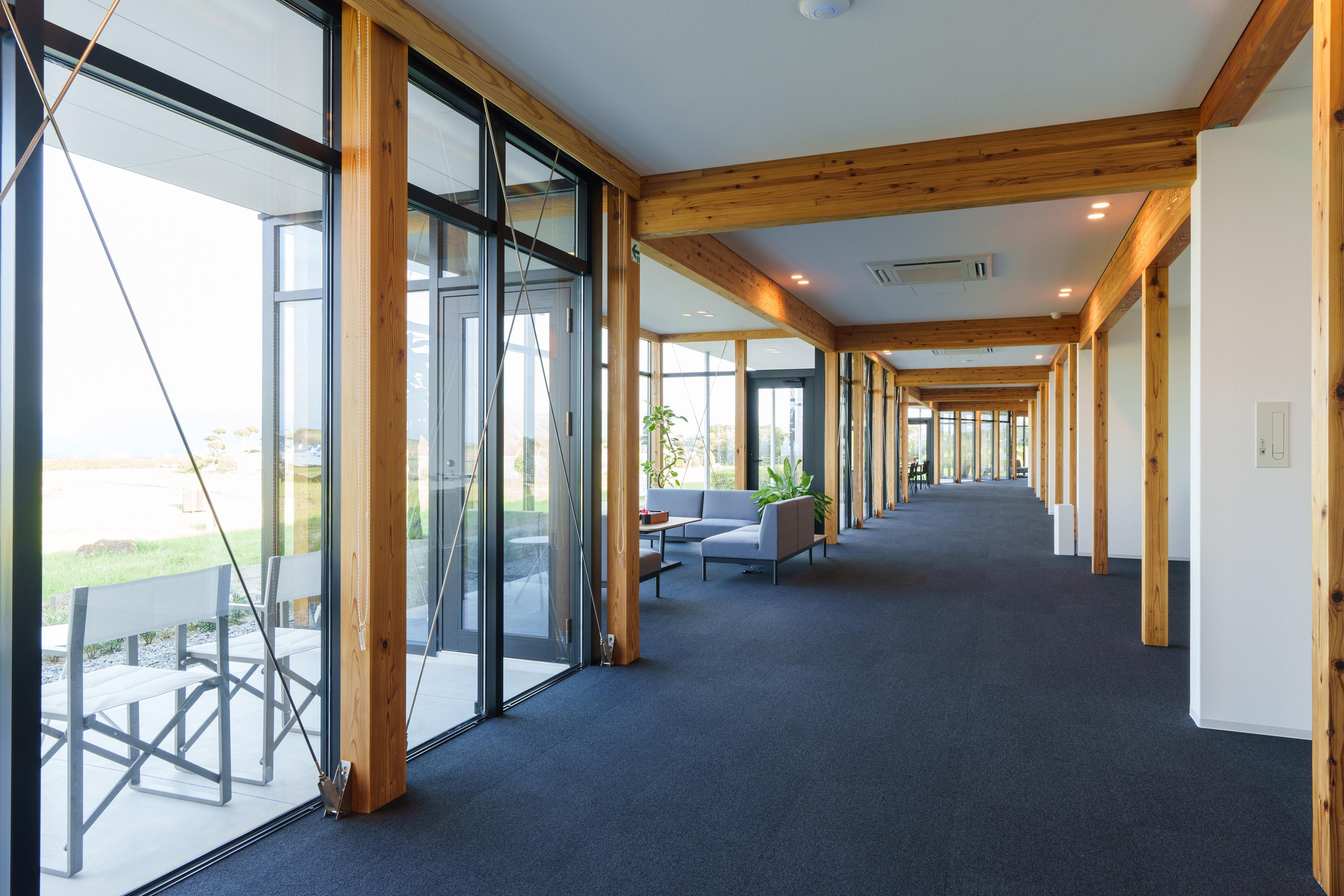 世界遺産に登録されている熊野本宮大社の屋根をモチーフにしたデザインが、人々と地域をおおらかに包み込む様子を表現。建築材や什器には紀州材をはじめとした国産材を活用した。電気は太陽光発電等による再生可能エネルギーを100%使用し、環境にやさしい施設となっている。