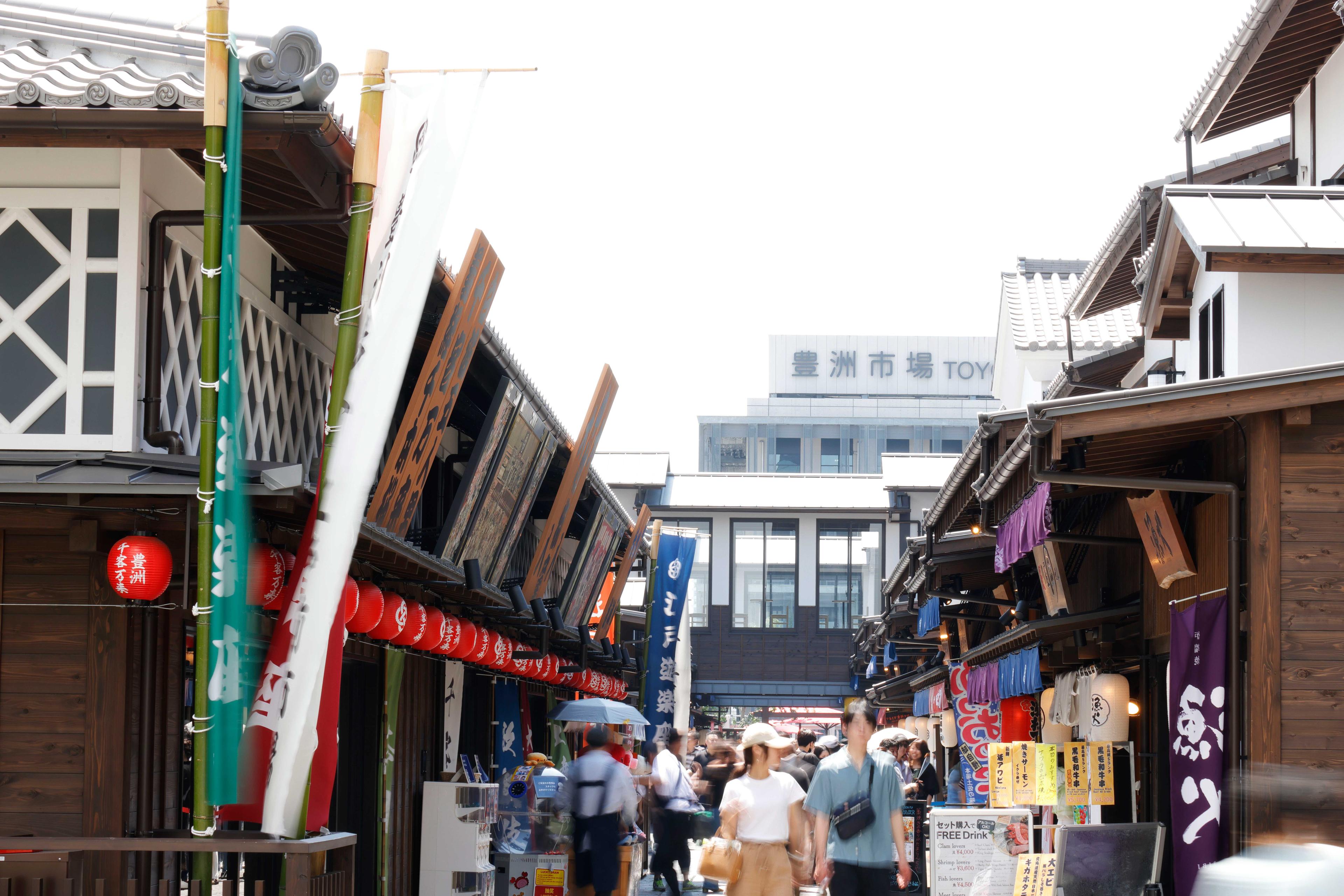 豊洲市場に隣接する豊洲 千客万来は、豊洲ならではのグルメを楽しめる食楽棟「豊洲場外 江戸前市場」と、箱根・湯河原の温泉を楽しめる温浴棟「東京豊洲 万葉倶楽部」からなる体験型観光施設です。食楽棟の2~3階の木造部には、多摩産材を使用した「COOL WOOD(1時間耐火仕様)」を採用し、日本最大級の木造耐火商業施設を実現しました。江戸の街並みを現代に再現し、日本の食・娯楽・建築文化の魅力を国内外に発信する東京の新名所です。