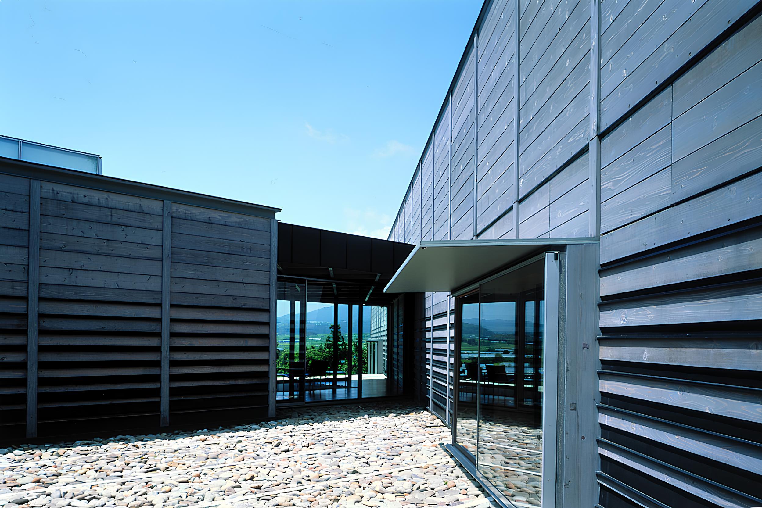施設は、真下画伯がテーマとされた最上川を一望できる丘の中腹、尋常小学校跡地に建設され、理想的なロケーションである。敷地内の桜をすべて残し、林野庁の補助事業を活用し、主たる建物を木造、市産材木材の活用など、作品と立地、建物が素晴らしく調和している。建物は小規模ながら、最上川を見下ろすテラス、各種イベントが行われる多目的室、絵画の常設展示室など、各々が求められる最良の空間を造り上げている。屋根が同じ張弦梁の構造でありながら、施設の奥に向かう空間の断面が変化する展開も興味深い。現在は産出されない地元の楯山石を市民に呼びかけ産出してもらい加工、テラスや玄関のアプローチに使用し、市産材の杉を外壁に活用するなど地元の文化をよく表出している。絵画の展示にとどまらず各種イベントが企画され、屋外テラスは地元住民の集いの場となっており、地元住民に愛される施設として評価される。